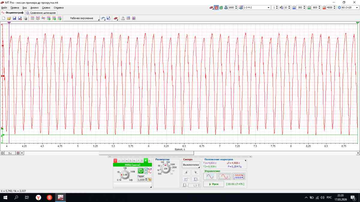 на диагностике ниссан примера. жалобы на нестабильную работу мотора, автомобиль уже с большим пробегом есть ньюансы в проводке которые я благополучно уже устранил. Перестали отключаться цилиндры, но стабильной работы мотора добиться я так и не смог. на осцилограмме с прокрутки видим неравномерное закрытие клапанов, на этих моторах нет гидрокомпенсаторов и регулировка должна осуществляться раз в 90 тысяч согласно регламента. так же был выявлен подсос воздуха на форсунках, решилось заменой форсунок. Завтра ожидается день номер 2 будем смотреть все по новой, ожидается тест прокрутки на холодную который как я думаю будет хуже чем представленный на фото